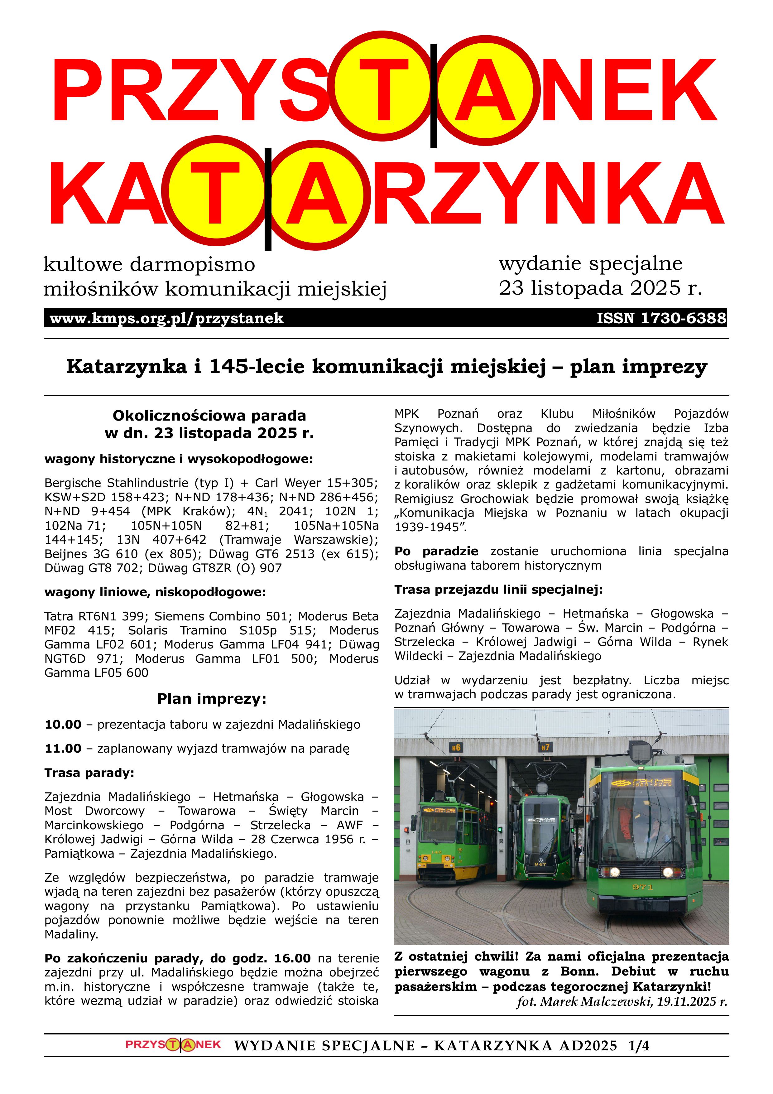 Zapraszamy Czytelników do współpracy przy redagowaniu Przystanku. Na naszym łamach odpowiadamy na nurtujące Was pytania dotyczące transportu miejskiego. Pytania prosimy przysyłać na adres: przystanek@kmps.org.pl